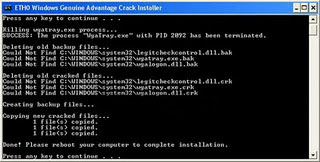 Lalu Bagaimana Cara Menghilangkan Windows Genuine Advantage Validation ini, caranya sangat mudah, anda tinggal download Software Windows Genuine Advantage Validation v1.7.69.2 di sini Ukurannya kecil, hanya 876 Kb. Extract, di dalamnya terdapat 4 file. Jalankan file Bat dengan nama “Kapan Windows XP murah” , akan tampil seperti gambar di bawah, Press any key,,,, Silahkan tekan sembarang tombol pada keyboard anda. Restart Laptop atau PC anda, mudah-mudahan masalahnya selesai. Tinggal masalah Keasliannya saja, kalau itu sih tanya pribadi dan kantong anda